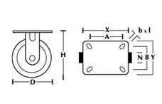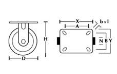 Колесные опоры неповоротные, литая протекторная резина, штампованный стальной обод, платформенное крепление