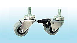 Колесные опоры поворотные и поворотные с тормозом, термопластическая резина, обод из высокопрочного пластика, болтовое крепление