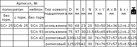 Колесные опоры поворотные, литая протекторная резина, штампованный стальной обод, платформенное крепление